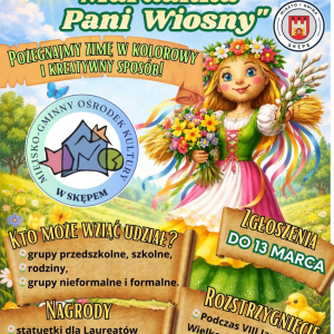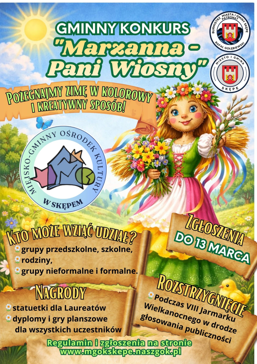 Zapraszamy do udziału w gminnym konkursie „Marzanna – Pani Wiosny” organizowanym przez Miejsko-Gminny Ośrodek Kultury w Skępem!