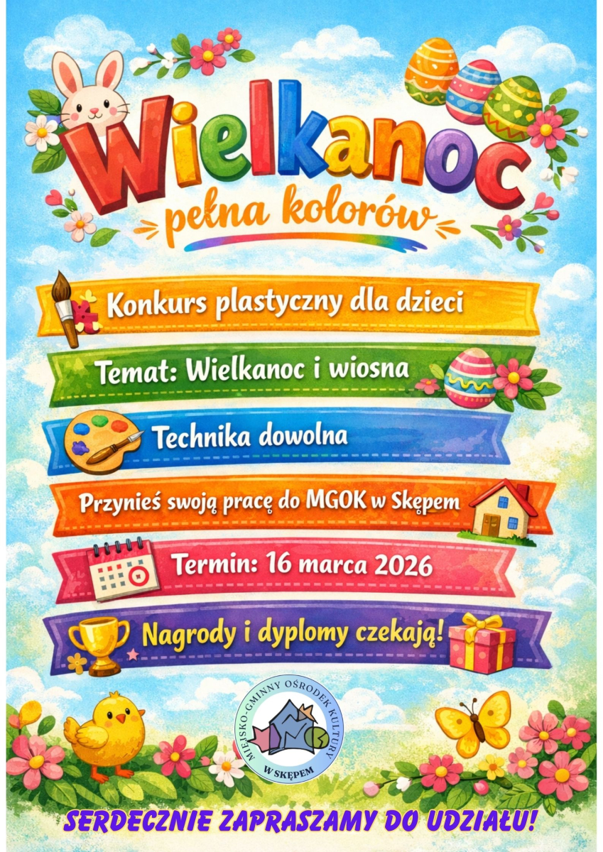 To doskonała okazja, by pokazać swoją kreatywność, wyobraźnię i radość z nadchodzącej Wielkanocy. Sięgnij po farby, kredki, pastele lub inne ulubione techniki i stwórz własną, wyjątkową wizję świąt – pełną barw, tradycji i wiosennej energii!